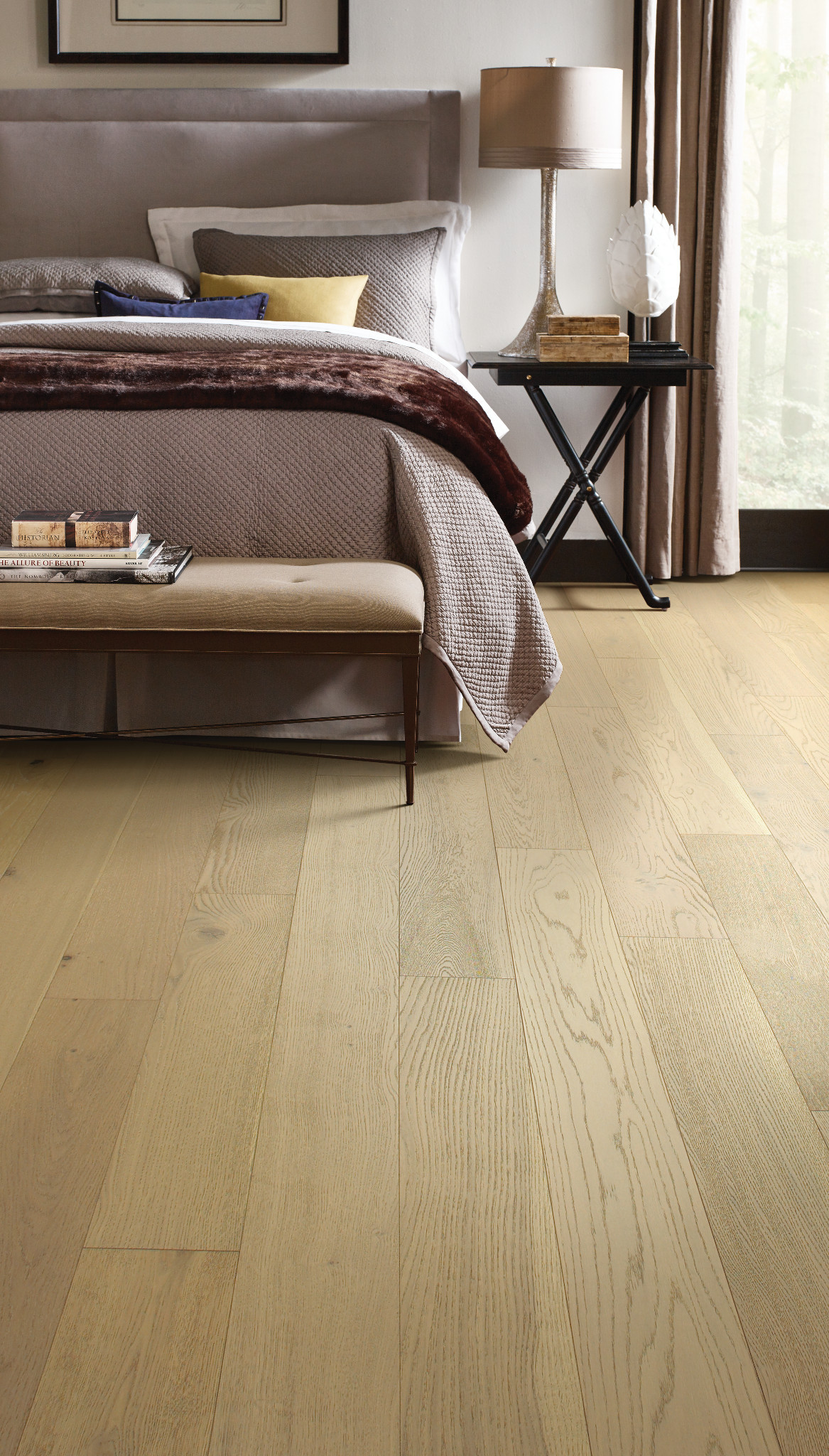Aston Hall showcases a brilliant, rich selection of stylish, wire-brushed surfaces that captivate audiences and demand attention. The Ply-core engineered, 7" wide planks are offered in several remarkable color variations, all possessing the power to elevate the beauty of your home and leave a lasting legacy. This line of white oak flooring boasts a unique, artistic charm that inspires a more elite and extravagant atmosphere. With alluring knots and stunning mineral streaks, Aston Hall creates a visually pleasing aesthetic that radiates strength only found in nature itself.