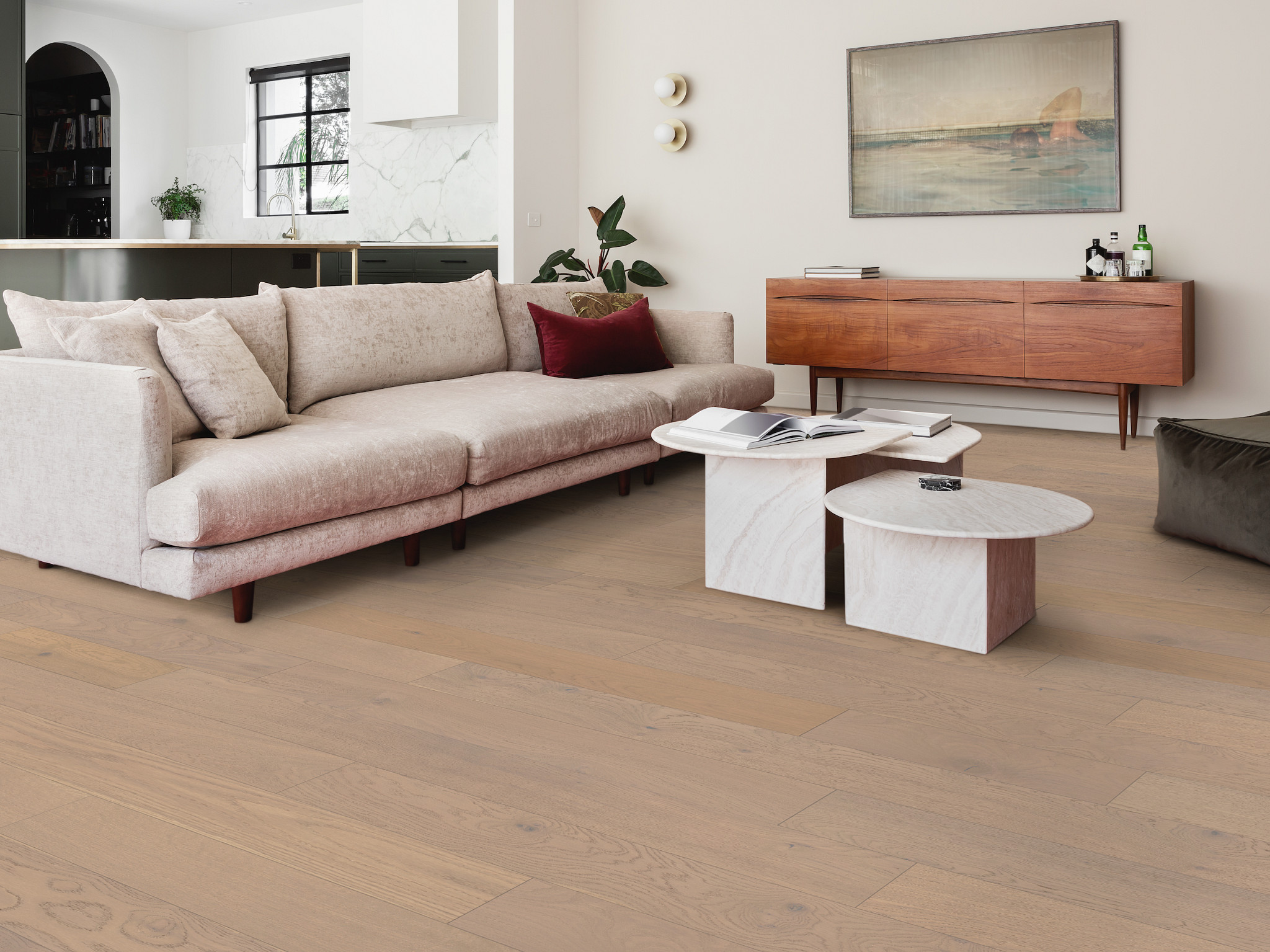 Aston Hall showcases a brilliant, rich selection of stylish, wire-brushed surfaces that captivate audiences and demand attention. The Ply-core engineered, 7" wide planks are offered in several remarkable color variations, all possessing the power to elevate the beauty of your home and leave a lasting legacy. This line of white oak flooring boasts a unique, artistic charm that inspires a more elite and extravagant atmosphere. With alluring knots and stunning mineral streaks, Aston Hall creates a visually pleasing aesthetic that radiates strength only found in nature itself.