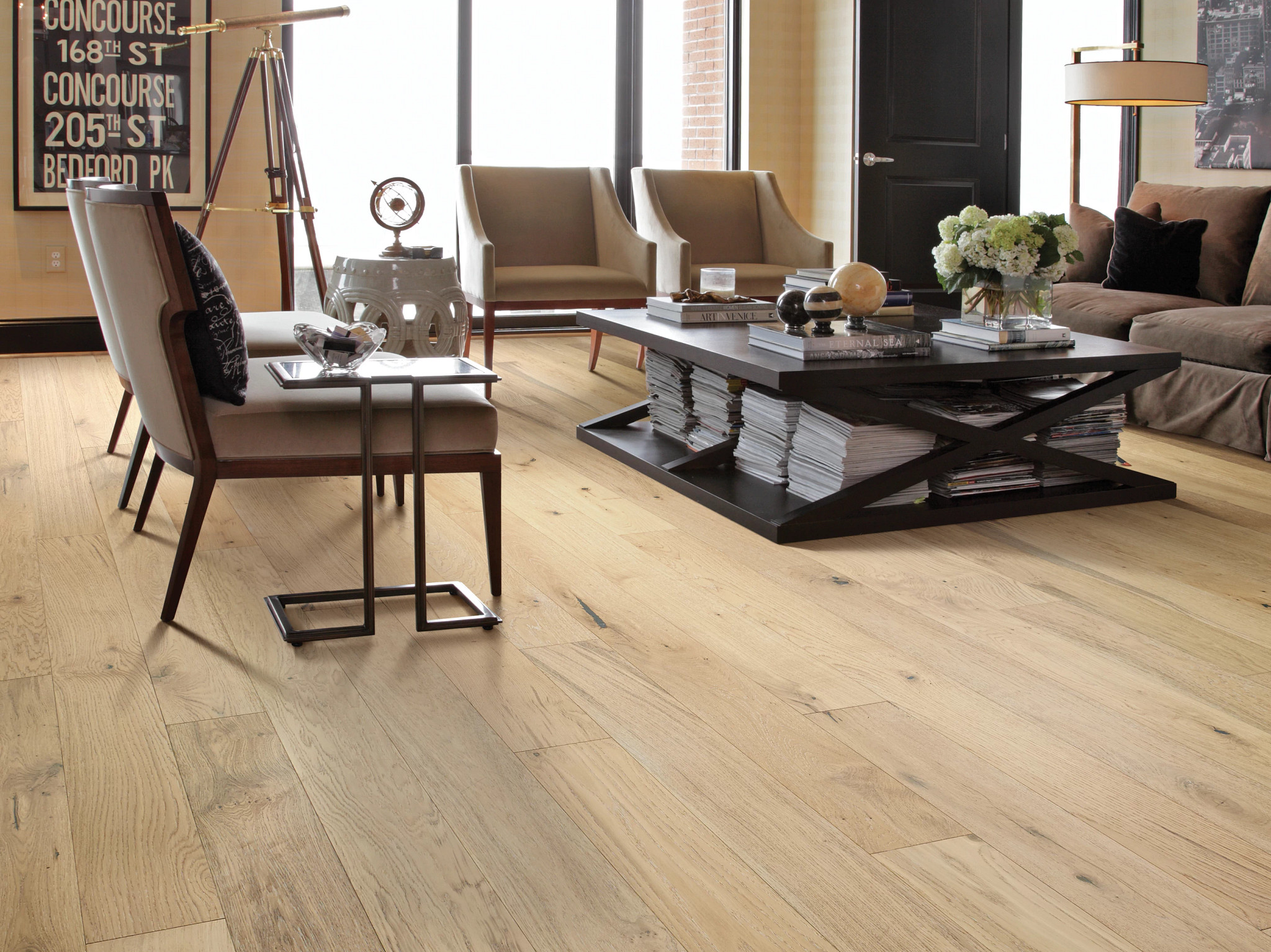 Aston Hall showcases a brilliant, rich selection of stylish, wire-brushed surfaces that captivate audiences and demand attention. The Ply-core engineered, 7" wide planks are offered in several remarkable color variations, all possessing the power to elevate the beauty of your home and leave a lasting legacy. This line of white oak flooring boasts a unique, artistic charm that inspires a more elite and extravagant atmosphere. With alluring knots and stunning mineral streaks, Aston Hall creates a visually pleasing aesthetic that radiates strength only found in nature itself.