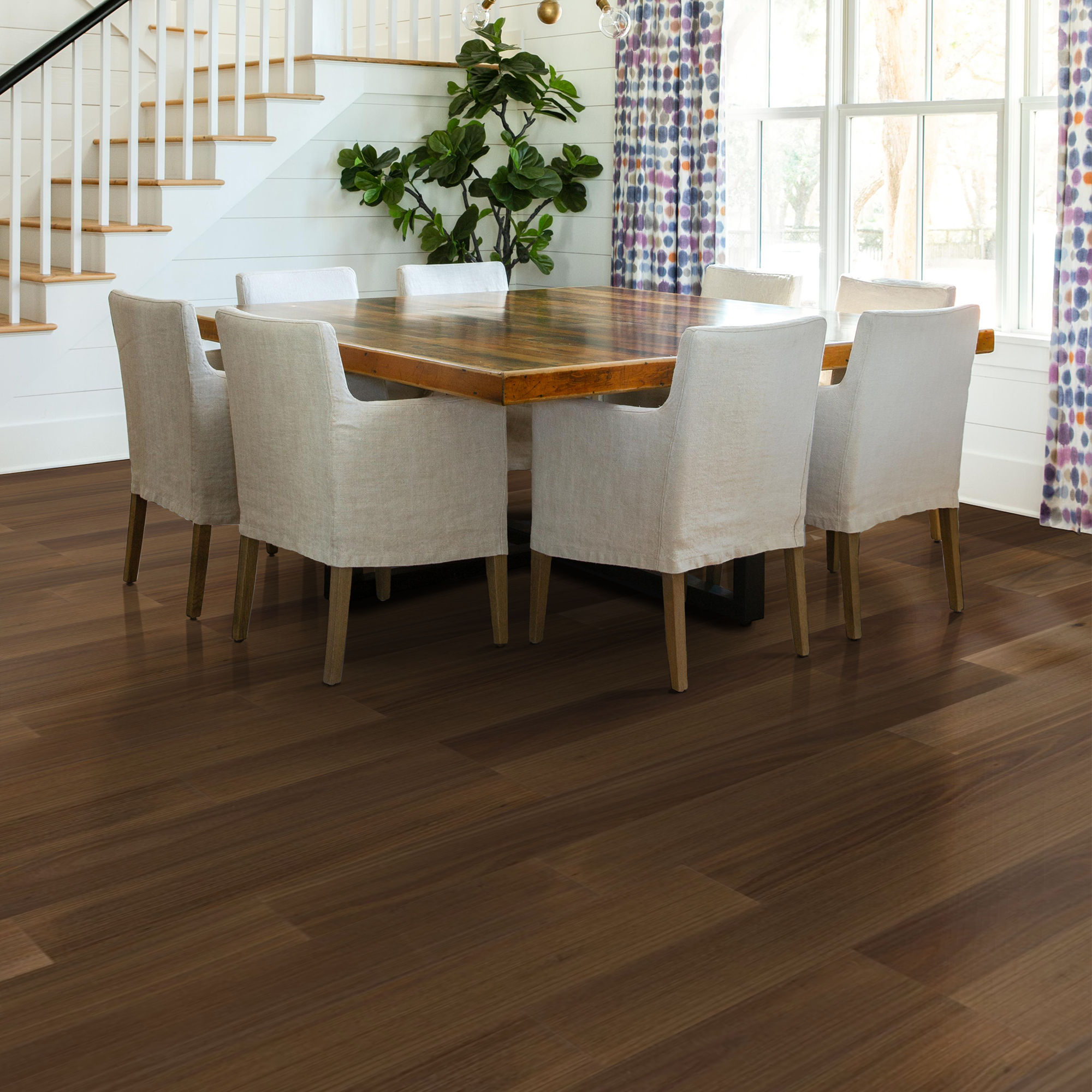 | Sorrento Walnut reimagines a classic species through a European lens, blending timeless character with modern elegance. Crafted from European walnut in wide 7.5" planks, this walnut flooring features a smooth texture, high variation, and reactive stains that enhance the wood’s natural depth and movement. With a palette of 6 soft, organic tones, Sorrento Walnut brings quiet sophistication to contemporary design, offering timeless beauty with modern versatility. |